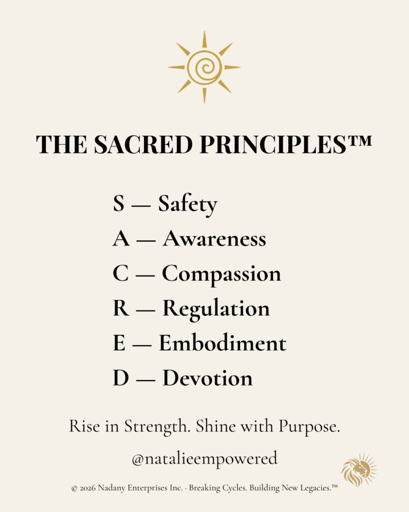 NADANY RECLAIM™ and The SACRED Principles™ were born from my own healing. It is a structured, trauma-informed pathway that helps women stabilize, reconnect, and rise in strength. It is the framework I wish I had when I was younger. It is the framework that changed my life. And it is the framework I now use to help others reclaim theirs.